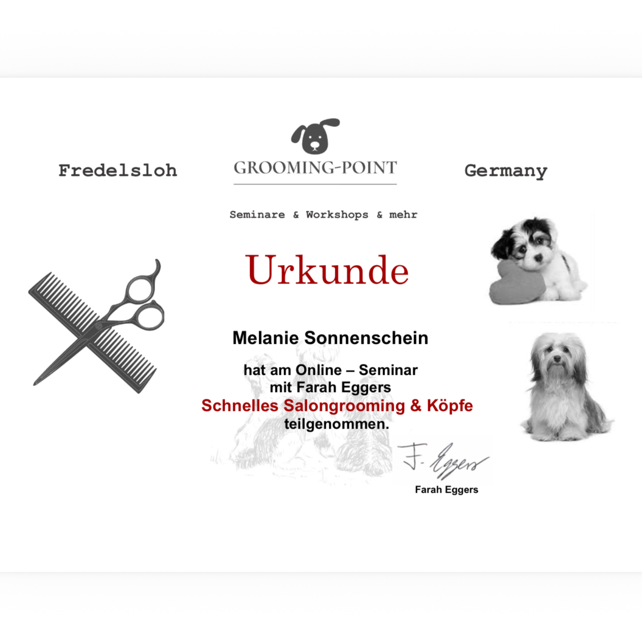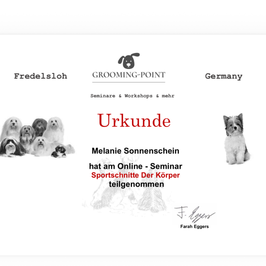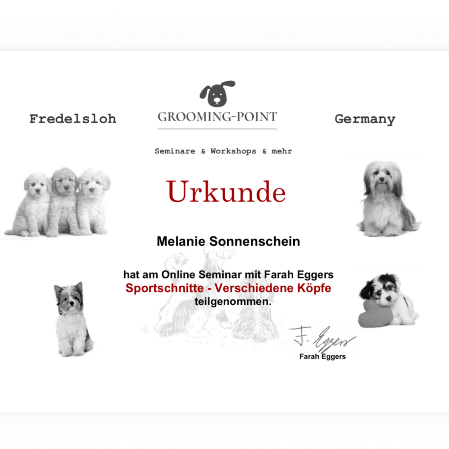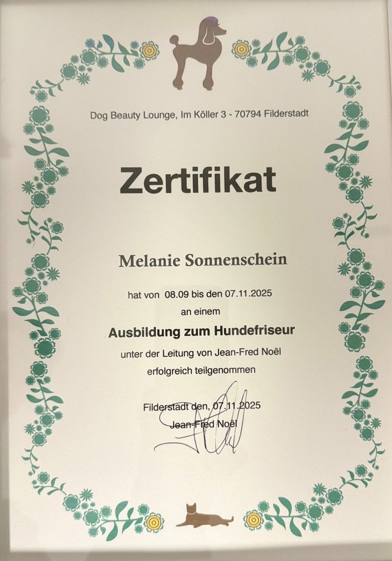 Ich liebe es, mit Hunden zu arbeiten und ihnen die Aufmerksamkeit und Pflege zu geben, die sie verdienen. Jeder Hund ist einzigartig, und ich passe meine Pflege individuell an, damit sich eure Vierbeiner bei mir rundum wohlfühlen.